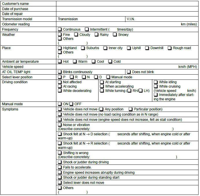 Make sure there is no noise, dragging or contact pattern in each select lever range.