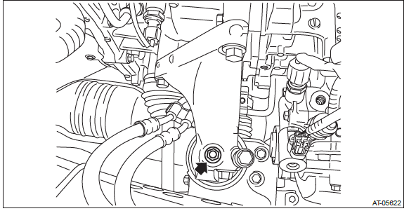 23) Install the nut to the transmission mounting bracket.
