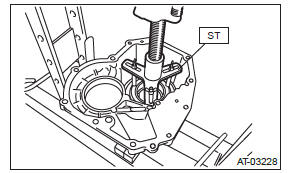 2) Remove the extension case, and then remove the transfer clutch. <Ref. to 5AT-65, REMOVAL, Extension Case.> <Ref. to 5AT-66, DISASSEMBLY, Extension Case.>